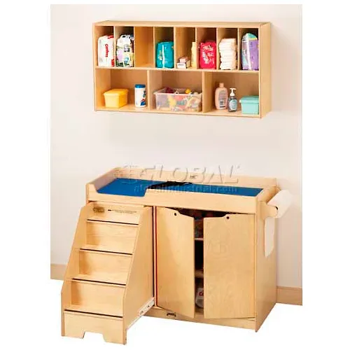 Jonti-Craft® Changing Table with 3 Shelved Cabinet and Left Side Stairs - Organizer Combo