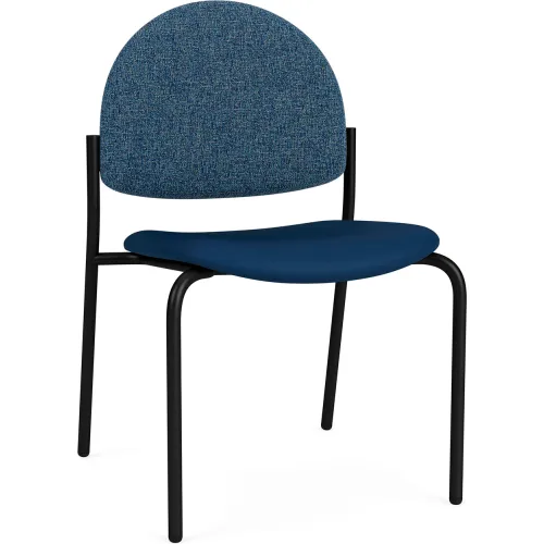 Lesro Chat Armless Guest Chair, Black Frame, Connelly Blue Jay Back, Patriot Plus Imperial Blue Seat