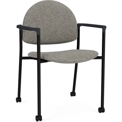 Lesro Chat Guest Chair with Casters, Black Frame, Onyx Black Armrests, Connelly Dove Fabric