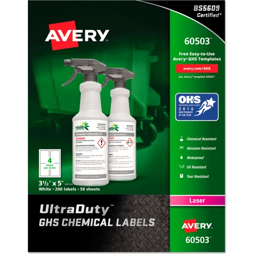 Avery® GHS Chemical Waterproof & UV Resistent Labels, Laser, 3-1/2" x 5", 200/Box