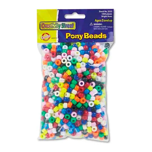 Chenille Kraft 3552 Pony Beads, Plastic, 6mm x 9mm, Assorted Colors, 1000/Pack