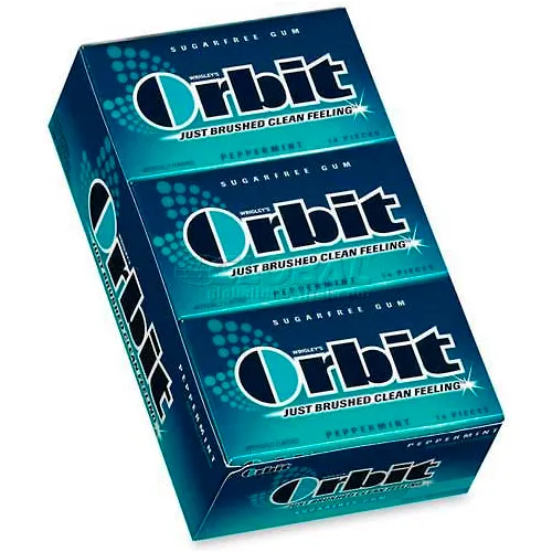 Wrigley® Orbit Chewing Gum, Peppermint, 14 Pieces/Pack, 12/Box