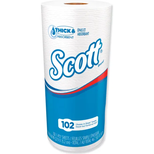 Scott® Choose-A-Sheet Mega Kitchen Roll Paper Towels, 1-Ply, 4.8 x 11, White, 102/Roll, 24/CT