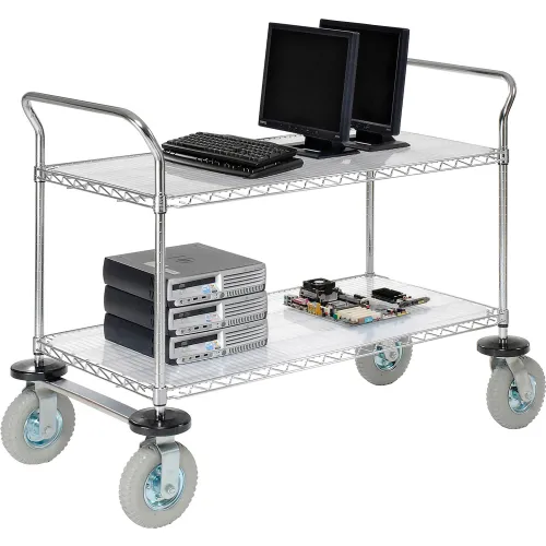 Nexel®, 2 Shelf, Utility Cart, Chrome, 48"W x 24"D x 44"H, Pneumatic Casters,2 Swivel, 2 Rigid