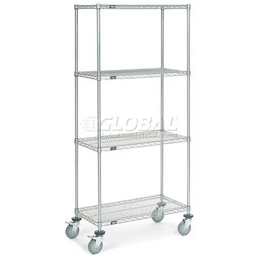 Nexel® 4 Shelf Truck, Chrome, 36"W x 18"D x 80"H, Polyurethane Stem Casters, 4 Swivel, 2 Brake