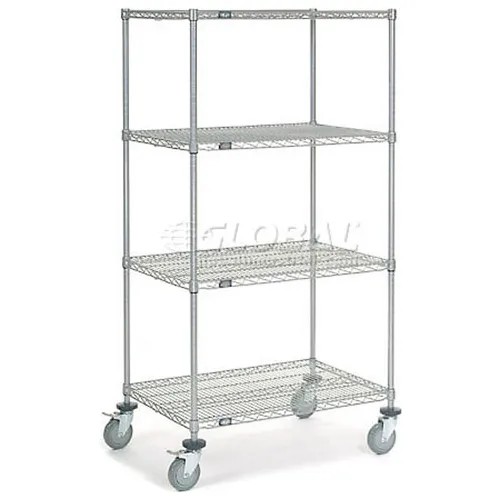 Nexel® 4 Shelf Truck, Chrome, 36"W x 24"D x 69"H, Polyurethane Stem Casters, 4 Swivel, 2 Brake
