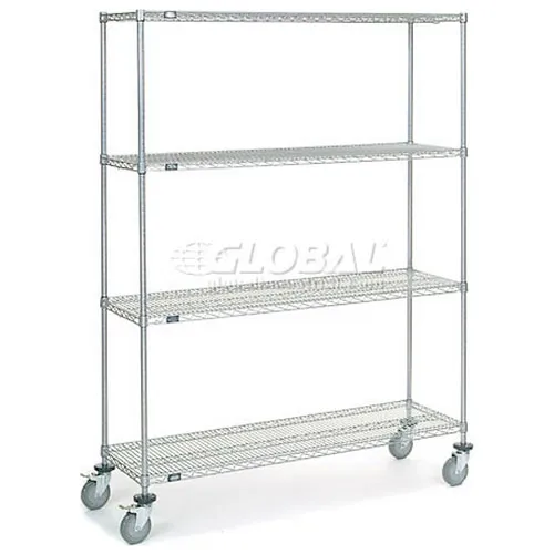 Nexel® 4 Shelf Truck, Chrome, 60"W x 18"D x 80"H, Polyurethane Stem Casters, 4 Swivel, 2 Brake