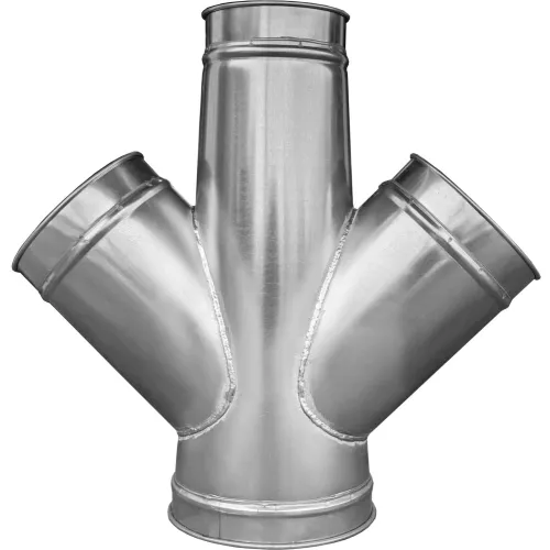 US Duct Clamp Together Double Branch, 45 ° 6-4-4-4, 6" Diameter, Galvanized, 18 Gauge