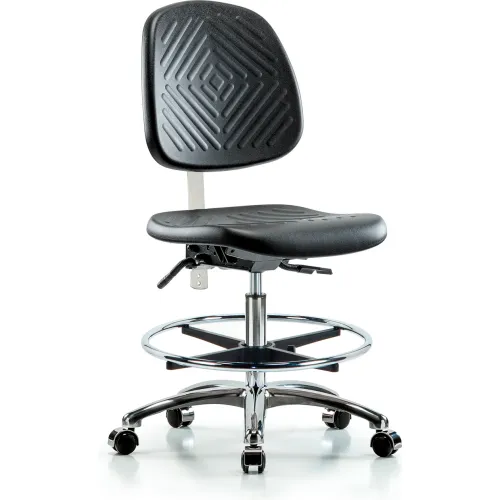 Blue Ridge Ergonomics Class 10 Polyurethane Clean Room Medium Bench Height Chair, Mid Back, Black