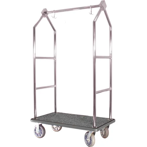 Hospitality 1 Source Classic Bellman's Luggage Cart w/ Gray Carpet & 8" Wheels, Titanium Gold