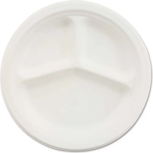 Chinet® HUHVISTA, 3-Comp. Classic Paper Plates, 9 1/4" Dia., White, 500/Carton