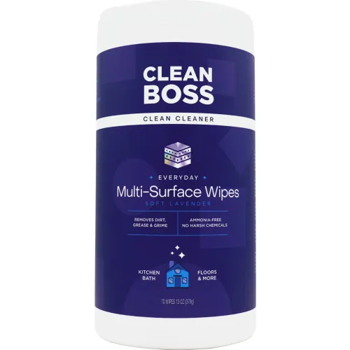 CleanBoss Clean Cleaner Foaming Lavender Multi-Surface Wipes, 70 count, 13 oz container, 8/Case