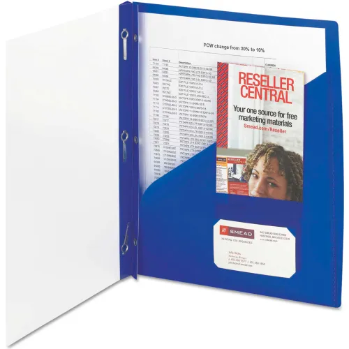 Smead Clear Front Poly Report Cover, Double-Prong Fastener, 0.5" Capacity, 8.5x11, Clear/Blue, 5/PK