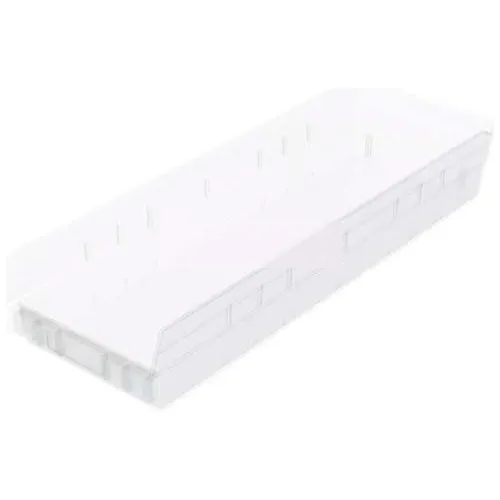 Akro-Mils Plastic Nesting Storage Shelf Bin 30184 - 8-3/8"W x 23-5/8"L x 4"H Clear - Pkg Qty 6