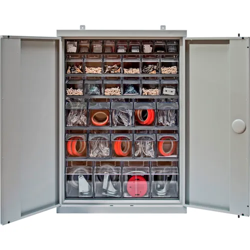 Quantum Tip Out Bin Small Cabinet 26-1/4"W x 10"D x 36-1/2"H, 35 Clear Cup, Gray