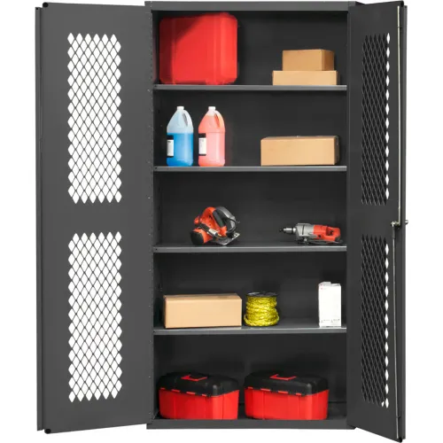 Durham® HD Cabinet, Expanded Metal Mesh Door, 14 Gauge, 36"W x 18"D x 72"H, All-Welded, Gray