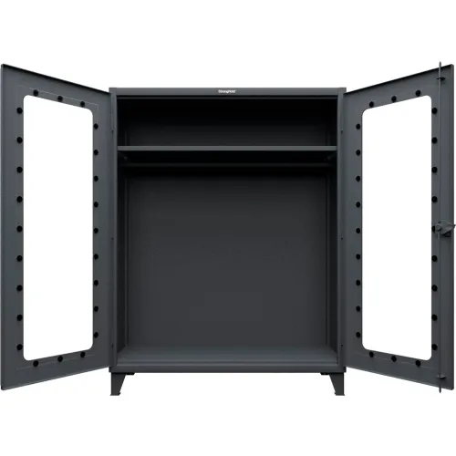 Strong Hold® Clearview Uniform Cabinet with Hanger Rod , 60"W x 24"D x 78"H, Dark Gray