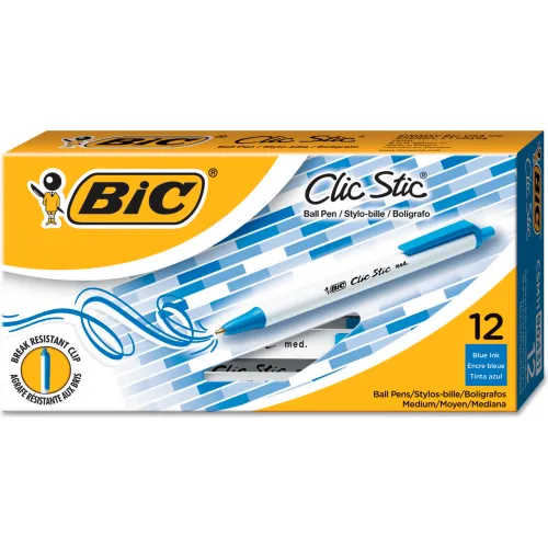 Bic® Clic Stic Ballpoint Retractable Pen, Medium, White Barrel, Blue Ink, Dozen