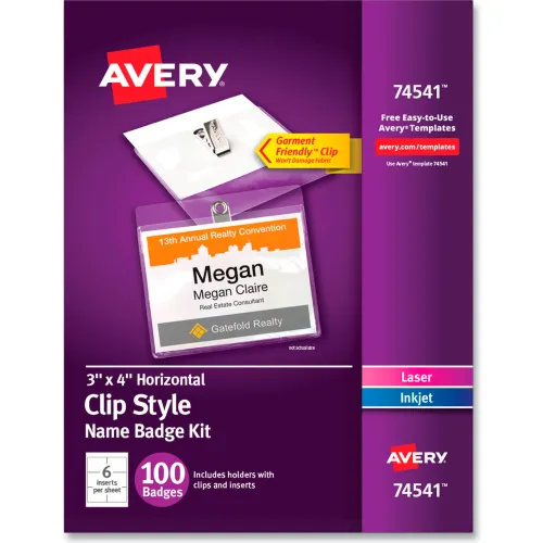 Avery® Clip Style Name Badges, 3" x 4", Clear, 100/Box