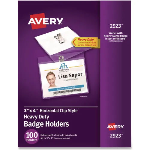 Avery® Clip Style Photo ID Badge Holders, Horizontal, 3" x 4", 100/Box