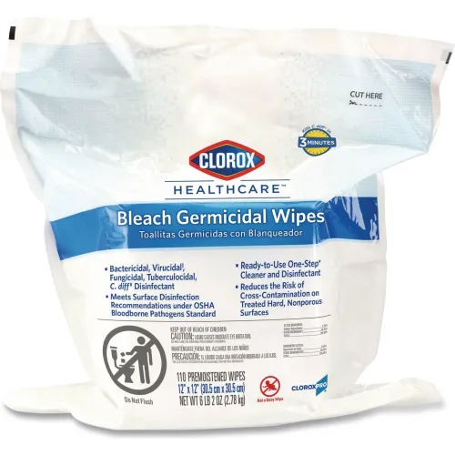 Clorox Healthcare® Bleach Germicidal Wipes, Refill for Bucket, 1-Ply, 12x12, Unscented, 110/Bag