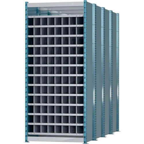 Hallowell Closed Style Deep Bin Shelving, 13 Shelves, Starter Unit, 36"W x 96"D x 87"H, Blue/Gray