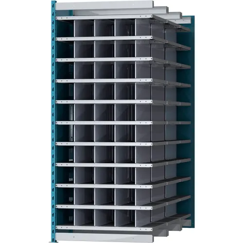 Hallowell Closed Style Deep Bin Shelving, 11 Shelves, Add-On Unit, 36"W x 72"D x 87"H, Blue/Gray