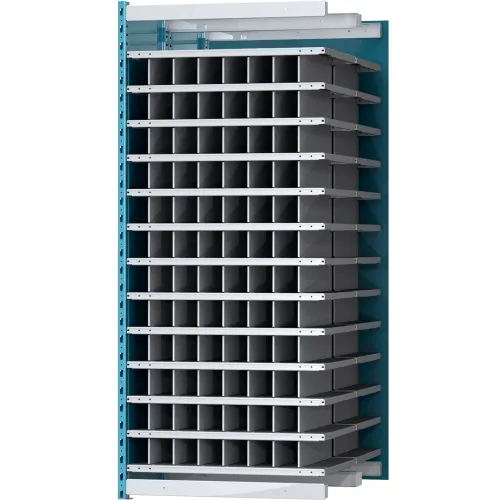 Hallowell Closed Style Deep Bin Shelving, 13 Shelves, Add-On Unit, 36"W x 48"D x 87"H, Blue/Gray