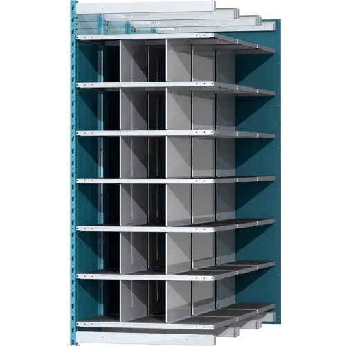 Hallowell Closed Style Deep Bin Shelving, 7 Shelves, Add-On Unit, 36"W x 72"D x 87"H, Blue/Gray