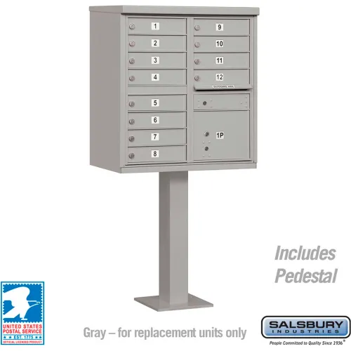 Cluster Box Unit, 12 A Size Doors, Type II, Gray, USPS Access