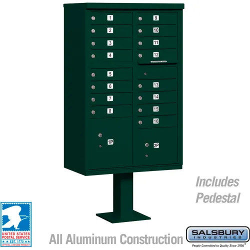 Cluster Box Unit, 16 A Size Doors, Type III, Green, USPS Access