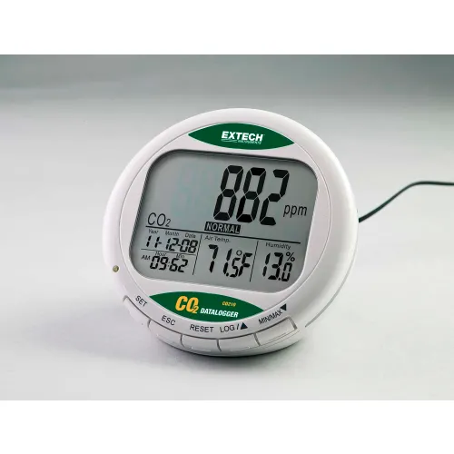 Extech CO210 Desktop Indoor Air Quality CO2 Monitor/Datalogger, AC Adapter, Software, Cable