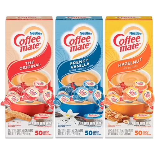 Coffee mate® Coffee Creamer, French Vanilla/Hazelnut/Original, 0.38 oz Mini Cups, Pack of 150