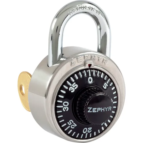 Zephyr 1925 Combination Padlock 13/16" Shackle with Control Key Option - Black Dial - Pkg Qty 10