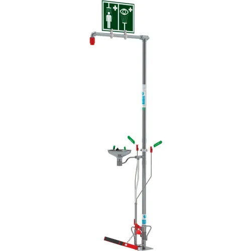 Hughes® Combination Shower, Self Draining, Floor Mount, Open SS Bowl, Stainless Steel Pipe