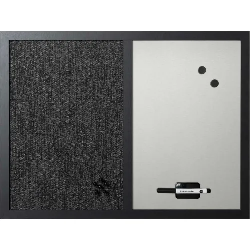 MasterVision Combo Silver Dry-Erase & Black Fabric Bulletin Board, 18" X 24", Black Frame