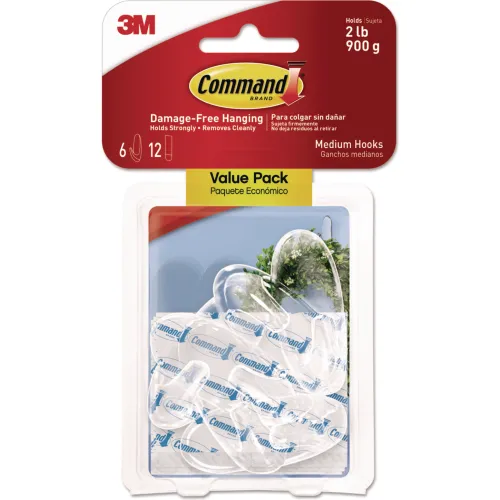Command Medium Clear Hooks, Plastic, Supports 2 lb, 6/Pack