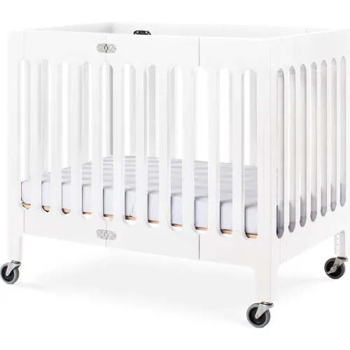 Foundations® Compact Boutique Folding Crib with Oversized Casters, Foam Mattress - White