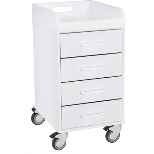 TrippNT Compact 4 Drawer Locking Medical Cart, White, 14"W x 19"D x 27"H