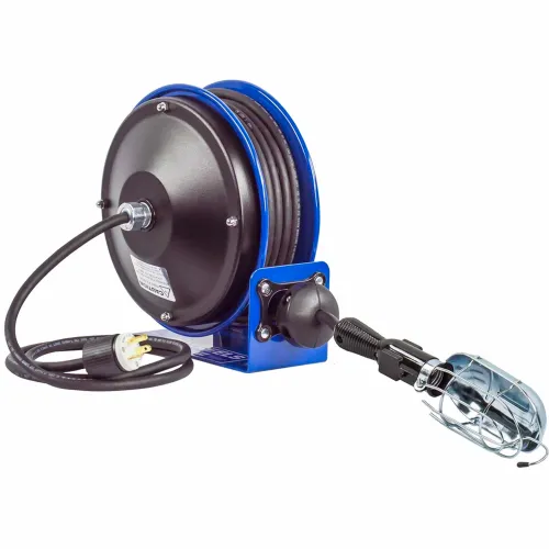 Coxreels PC10-3016-E Compact Efficient Heavy Duty Power Cord Reel w Incand Caged Drop Light w/ Tap