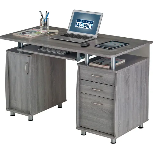 Techni Mobili Complete Workstation Computer Desk with Storage, Gray
