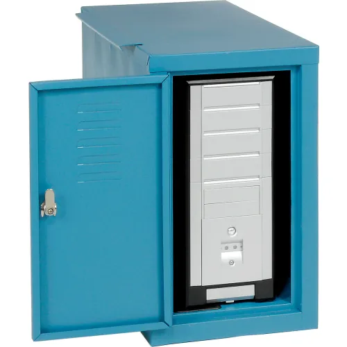 Global Industrial CPU Enclosed Side Car Cabinet, 12"W x 22-1/2"D x 21-1/2"H, Blue