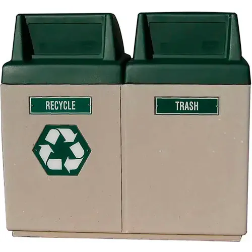 Wausau Concrete 2 Bin Trash and Recycle Container, 88 Gallon, Gray/Tan