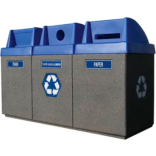 Wausau Concrete 3 Bin Trash and Recycle Container, 132 Gallon, Gray/Tan