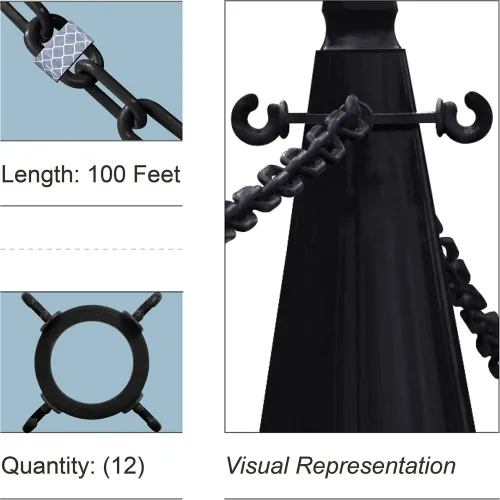 Mr. Chain® Cone Chain Connector Kit, 2" Link, 100', HDPE, Reflective Black, Pack of 12