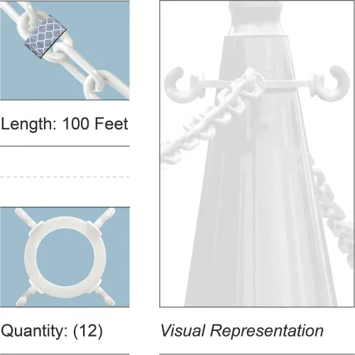 Mr. Chain® Cone Chain Connector Kit, 2" Link, 100', HDPE, Reflective White, Pack of 12