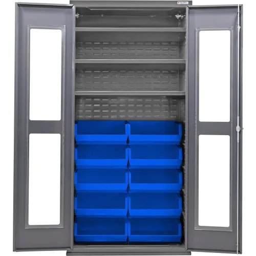 Global Industrial™ Clear-View Configurable Bin Cabinet, 36"Wx24"Dx78"H, 3 Shelves, 12 Blue Bins