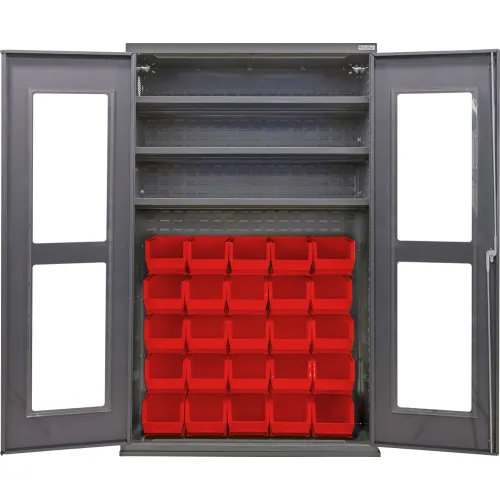 Global Industrial™ Clear-View Configurable Bin Cabinet, 48"Wx24"Dx78"H, 3 Shelves, 36 Red Bins