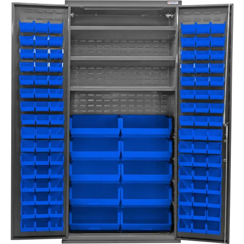 Global Industrial™ E-Locking Configurable Bin Cabinet, 36"Wx24"Dx78"H, 3 Shelves, 108 Blue Bins