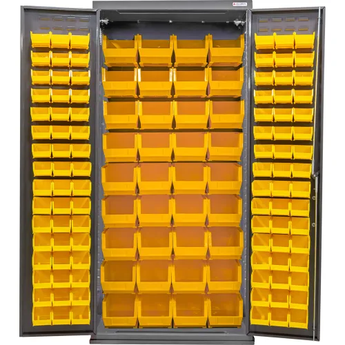 Global Industrial™ E-Locking Configurable Bin Cabinet, 36"W x 24"D x 78"H, 132 Yellow Bins